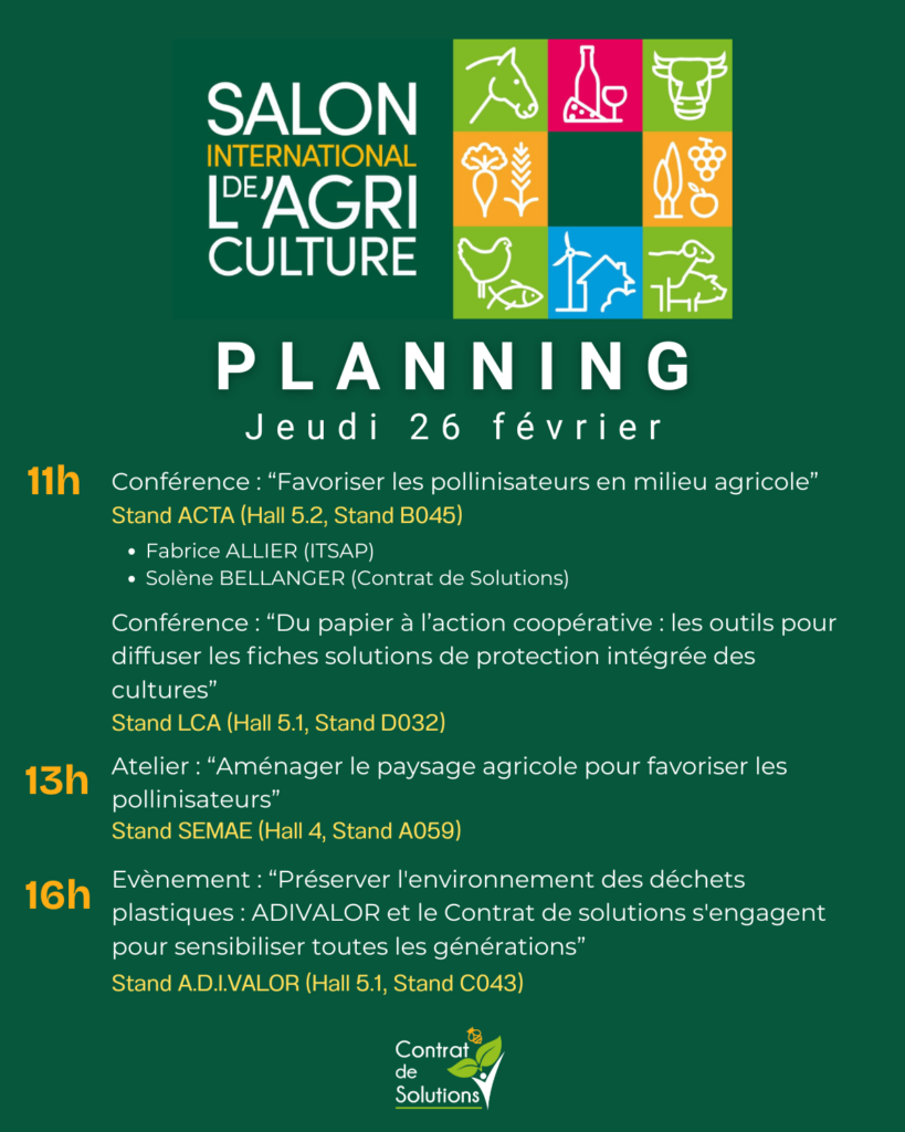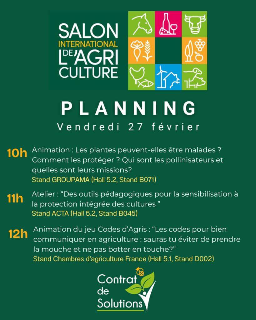 Le Contrat de Solutions vous donne rendez-vous les 25, 26 et 27 février sur les stands de ses partenaires pour des interventions variées : animations de jeu et de quizz, conférences, ateliers, tables rondes,…
