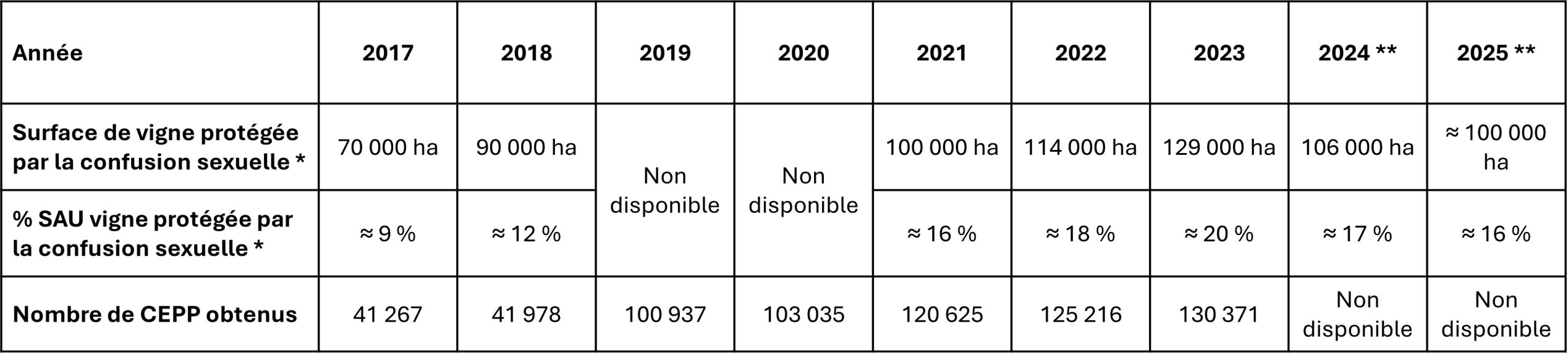 D’un point de vue réglementaire, le produit figure sur la liste des produits de biocontrôle 4. Cette solution est UAB et éligible au CEPP (fiche action n° 2025-009 « Lutter contre les tordeuses en vigne au moyen de diffuseurs de phéromones pour la confusion sexuelle » 5).