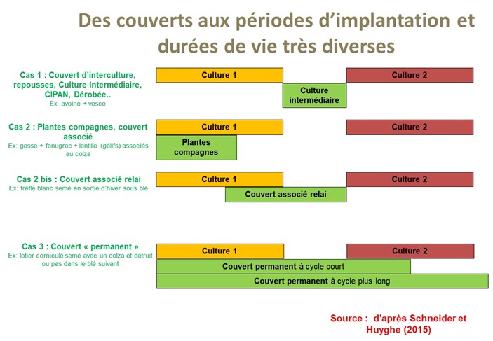 Figure 1 – Différentes catégories de couverts pouvant avoir un impact sur la gestion des adventices et des repousses du précédent cultural