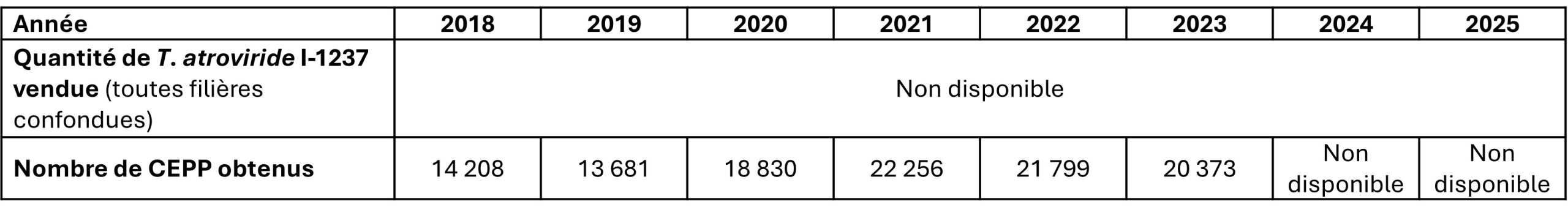 Réglementairement, les préparations à base de Trichoderma atroviride I-1237 figurent sur la liste des produits de biocontrôle et contre les maladies de sol en cultures légumières 4. Cette solution est UAB et éligible au CEPP (fiche action n° 2017-026 « Lutter contre les champignons telluriques au moyen d’un produit de biocontrôle » 5).