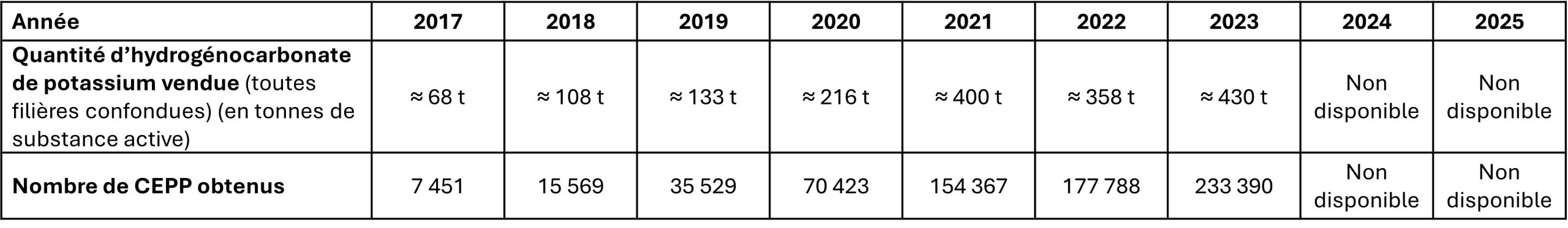 D’un point de vue réglementaire, l’hydrogénocarbonate de potassium figure sur la liste des produits de biocontrôle 2. L’hydrogénocarbonate de potassium est UAB. Il est compatible avec la Protection Biologique Intégrée (PBI) et la Protection Fruitière Intégrée (PFI). Cette solution est éligible au CEPP (Fiche action n° 2025-028 « Lutter contre divers champignons pathogènes du feuillage au moyen d’un produit de biocontrôle » 3).