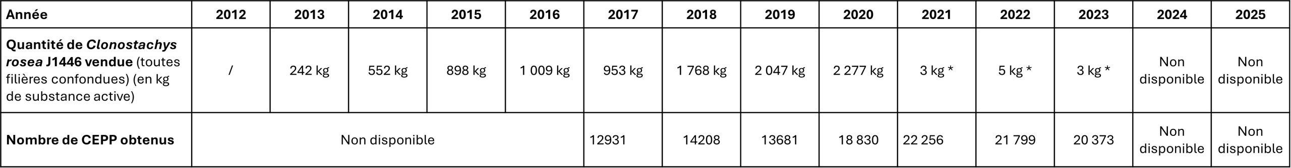Pour les fruits à noyau, pour lutter contre les maladies de conservation, cette solution s’applique avant conditionnement des fruits, soit par trempage des fruits (cerise), soit par pulvérisation sur le fruit 1. C. rosea souche J1446 a un usage préventif, en application au sol ou en application foliaire. Il est utilisable en plein air et sous abri à des températures supérieures à 10°C.