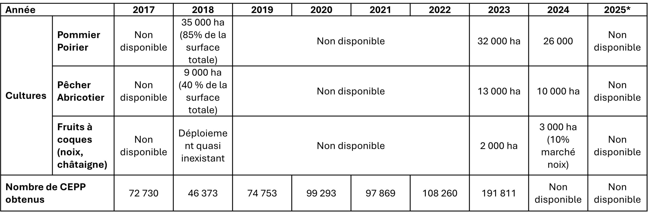D’un point de vue réglementaire, le produit figure sur la liste des produits de biocontrôle 3. Cette solution est UAB et éligible au CEPP (fiche action n°2025-005 « Lutter contre les Lépidoptères ravageurs en vergers au moyen de diffuseurs de phéromones pour la confusion sexuelle » 4).